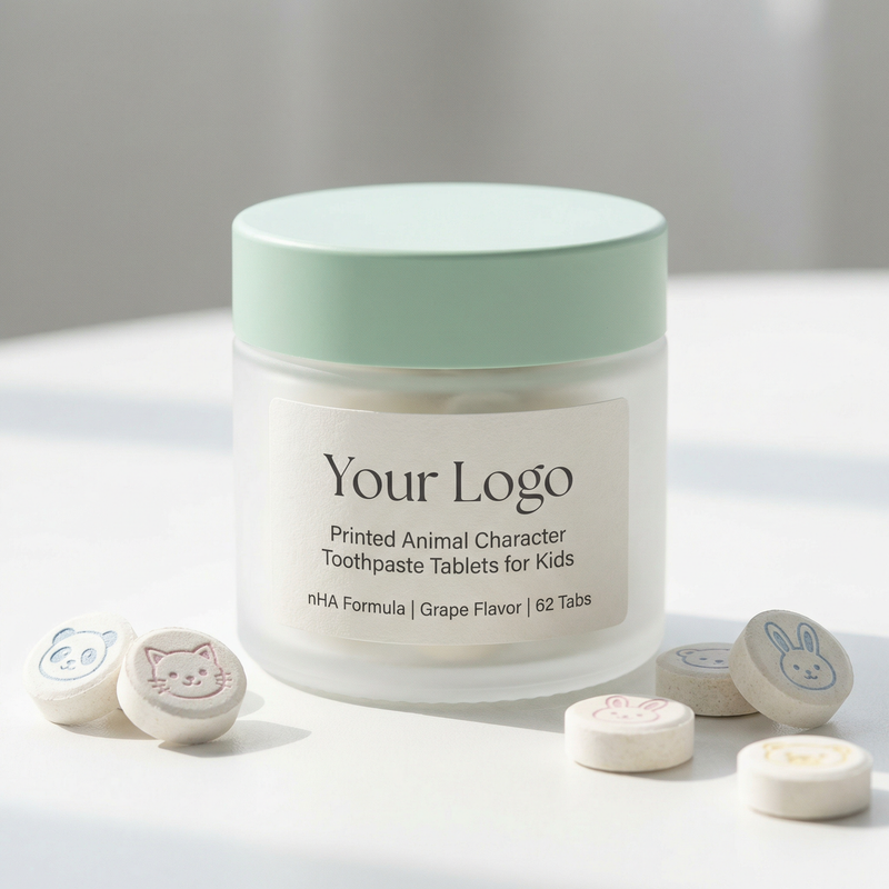 We offer full OEM/ODM customization for brands looking to launch their own line of kids' printed toothpaste tablets: